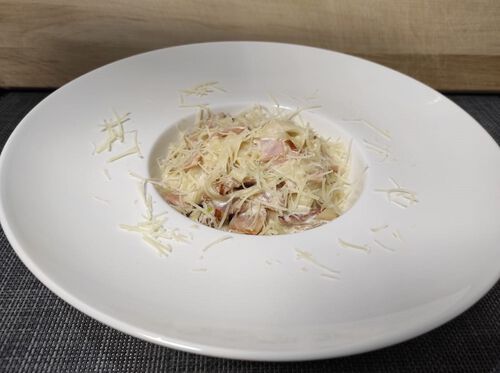 Ветчина, бекон, лук порей, сливки, пармезан, фетучини (250 гр.)