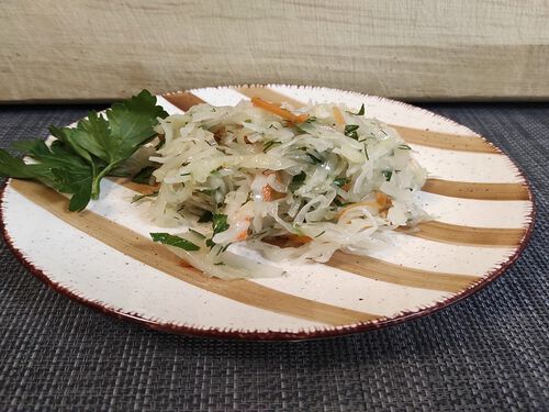 Квашенная капуста, лук репка, масло растительное, зелень, сахар, соль (100 гр.)