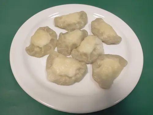 Вареники с картошкой и жареным луком со сметаной