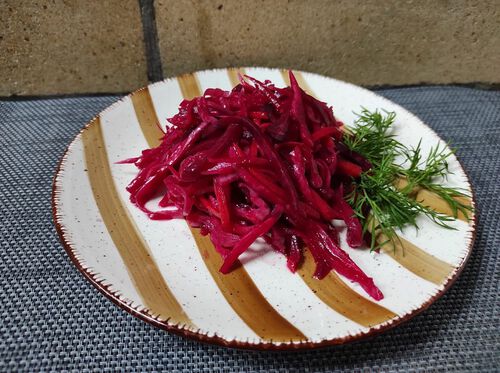 Картофель, морковь, свекла, огурец соленый, горошек консервированный, соль, сахар, масло растительное, зелень (100 гр.)