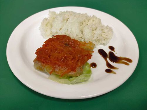 Филе минтая под маринадом с отварным рисом