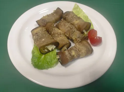 Баклажанные рулетики с сыром, чесноком и орехом