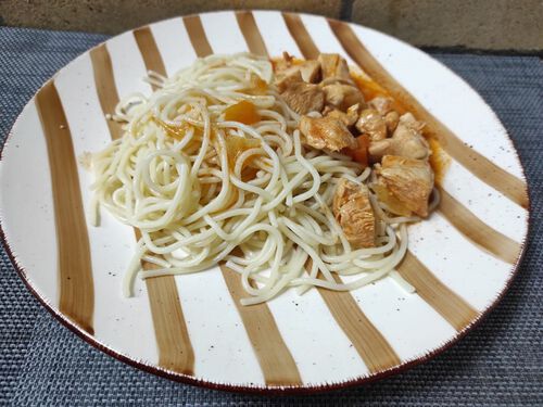 Поджарка из свинины со спагетти